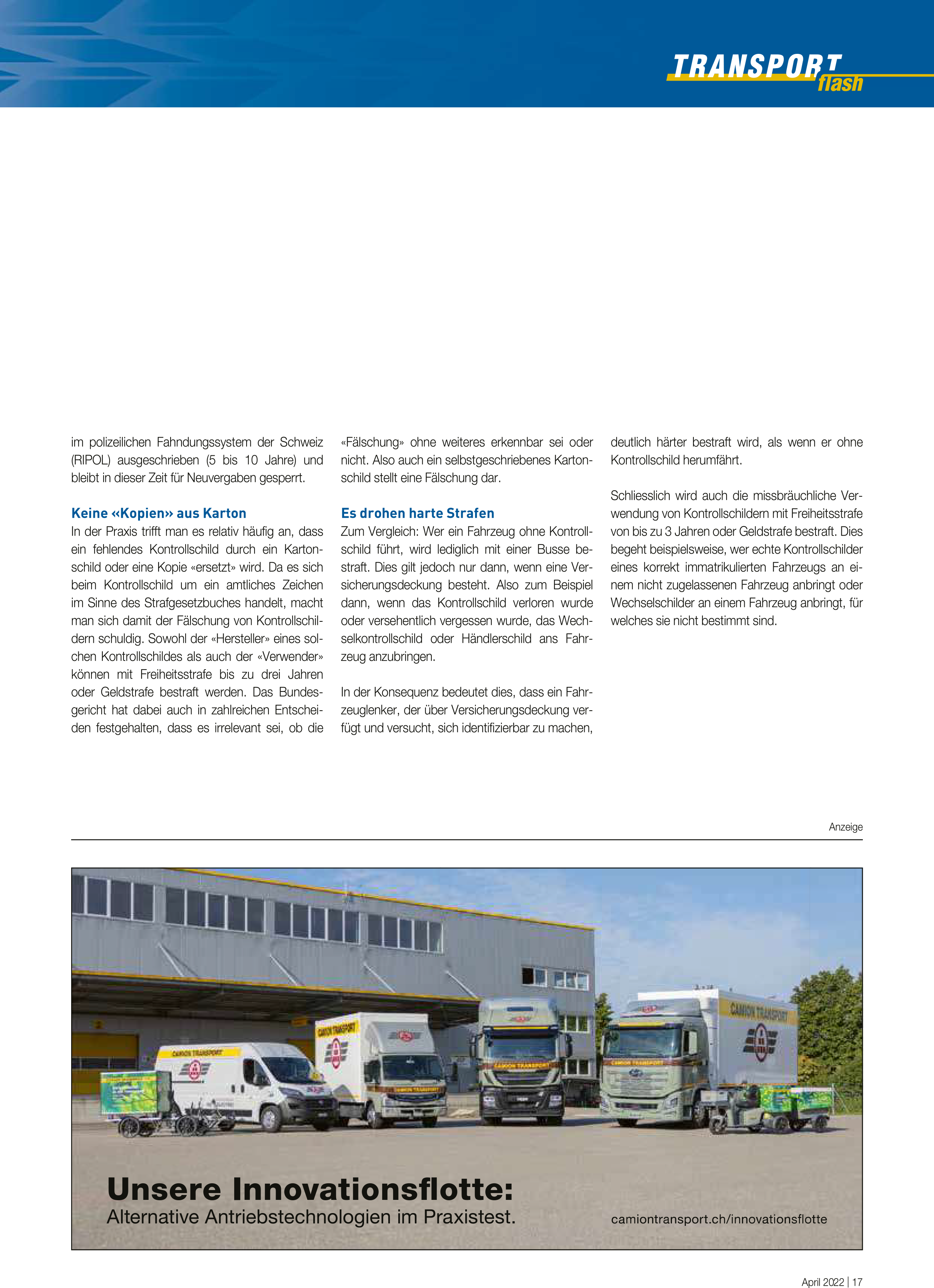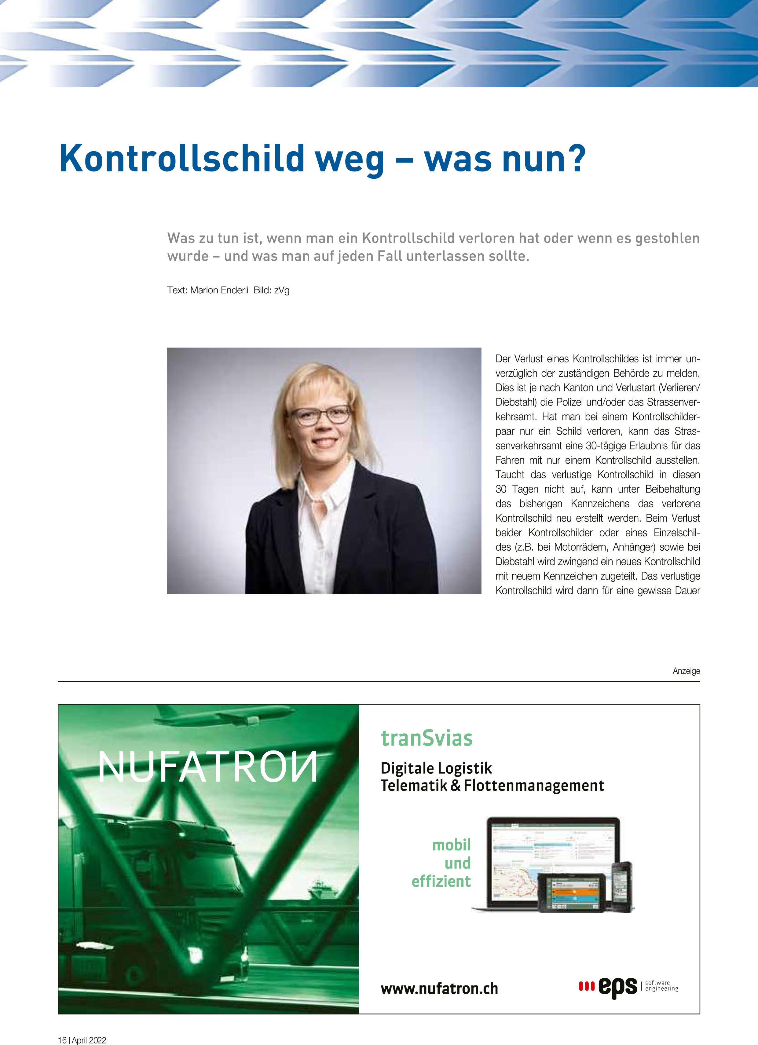 Was man tun sollte, wenn man das Kontrollschild verliert und was nicht. Nachzulesen im aktuellen Transportflash
